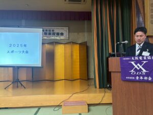 その後、濱田会長より2025年の活動報告として、年次総会・レクリエーション活動・ボランティア活動・スポーツ大会等の実施行事について、スライドにより皆様方にご報告いたしました。