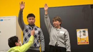 成績発表では、入賞者を発表するたびに歓声と笑いが沸き上がり、表彰式は大いに盛り上がりました。個人戦においては、上位者から順に豪華賞品を選んでいただき、優勝者には吉年会長から豪華景品が手渡されました。会場は終始盛り上がり、参加者同士の交流を深めていただきました。